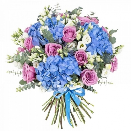 Букет из гортензий, эустомы и роз с доставкой в Оксфорде