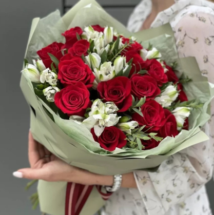 Букет из роз и альстромерий "Луиза"